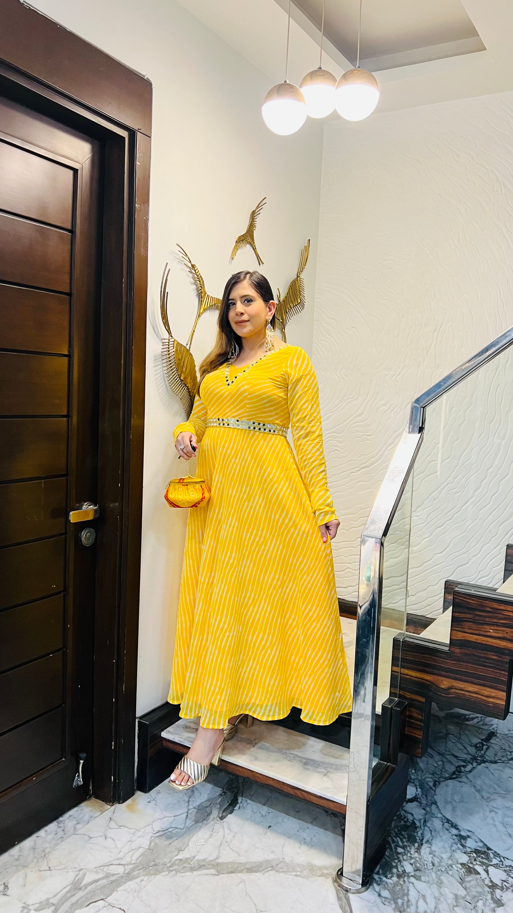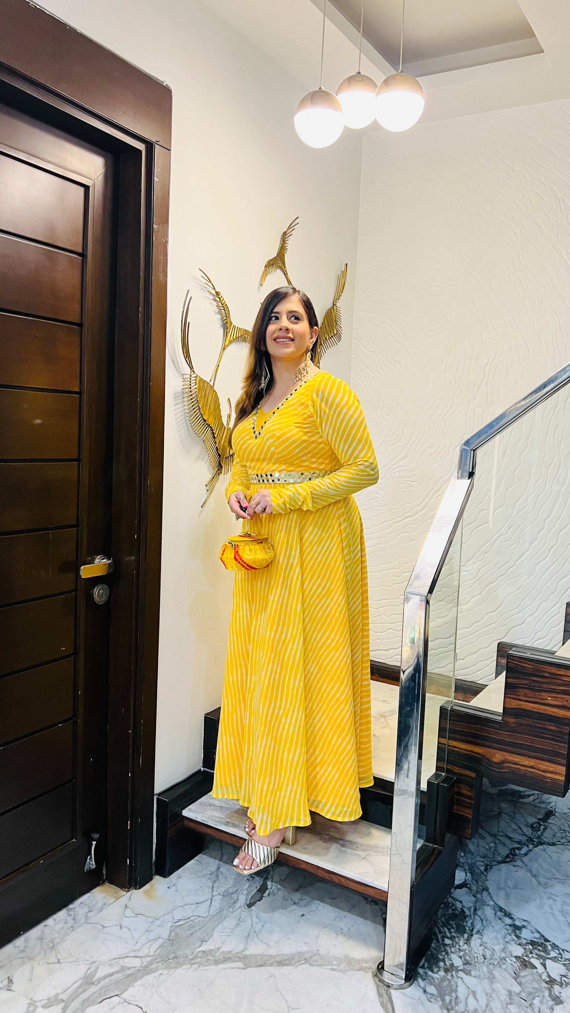 "Embrace vibrant traditions with the 'Yellow Leheriya Ethnic Maxi Dress'! 🌼 This flowing maxi dress features classic leheriya patterns, offering a bright and cheerful look for festive occasions. ✨👗" |