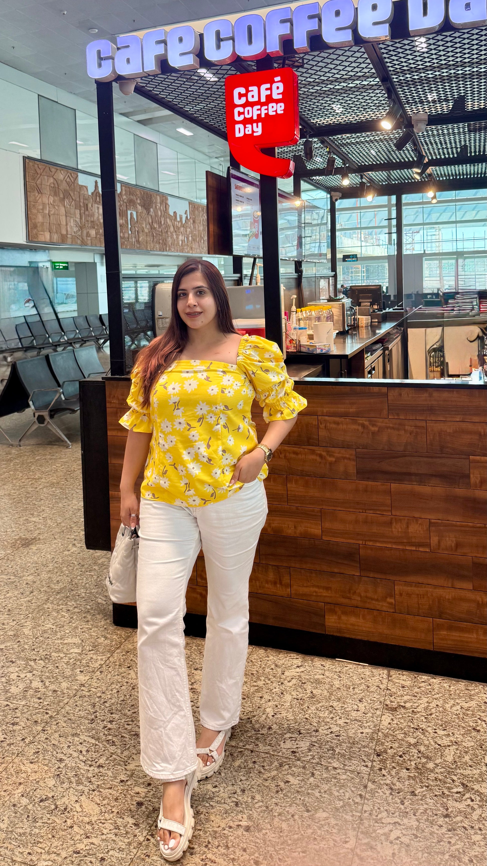 "The Yellow Lily Vacation Top 🌼 is a chic choice featuring vibrant yellow tones, puffed sleeves, and a delicate floral pattern 🌸. Perfect for casual outings or sunny adventures ☀️✨!" |
