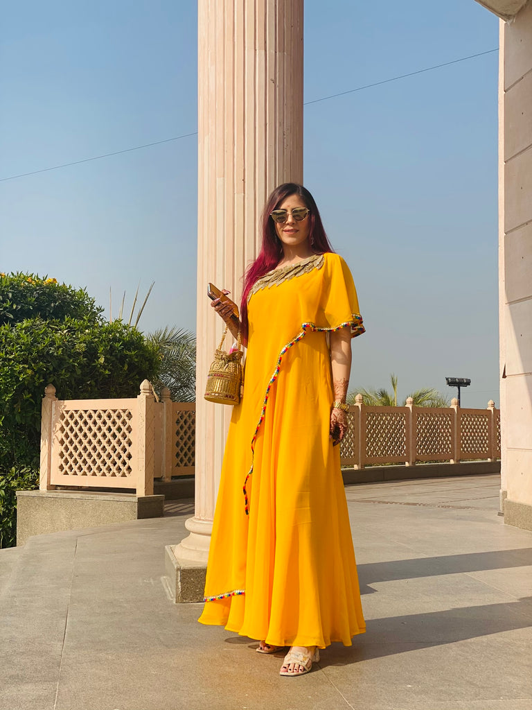 Yellow in colour, this maxi features beautiful gota patti work & embroidery.