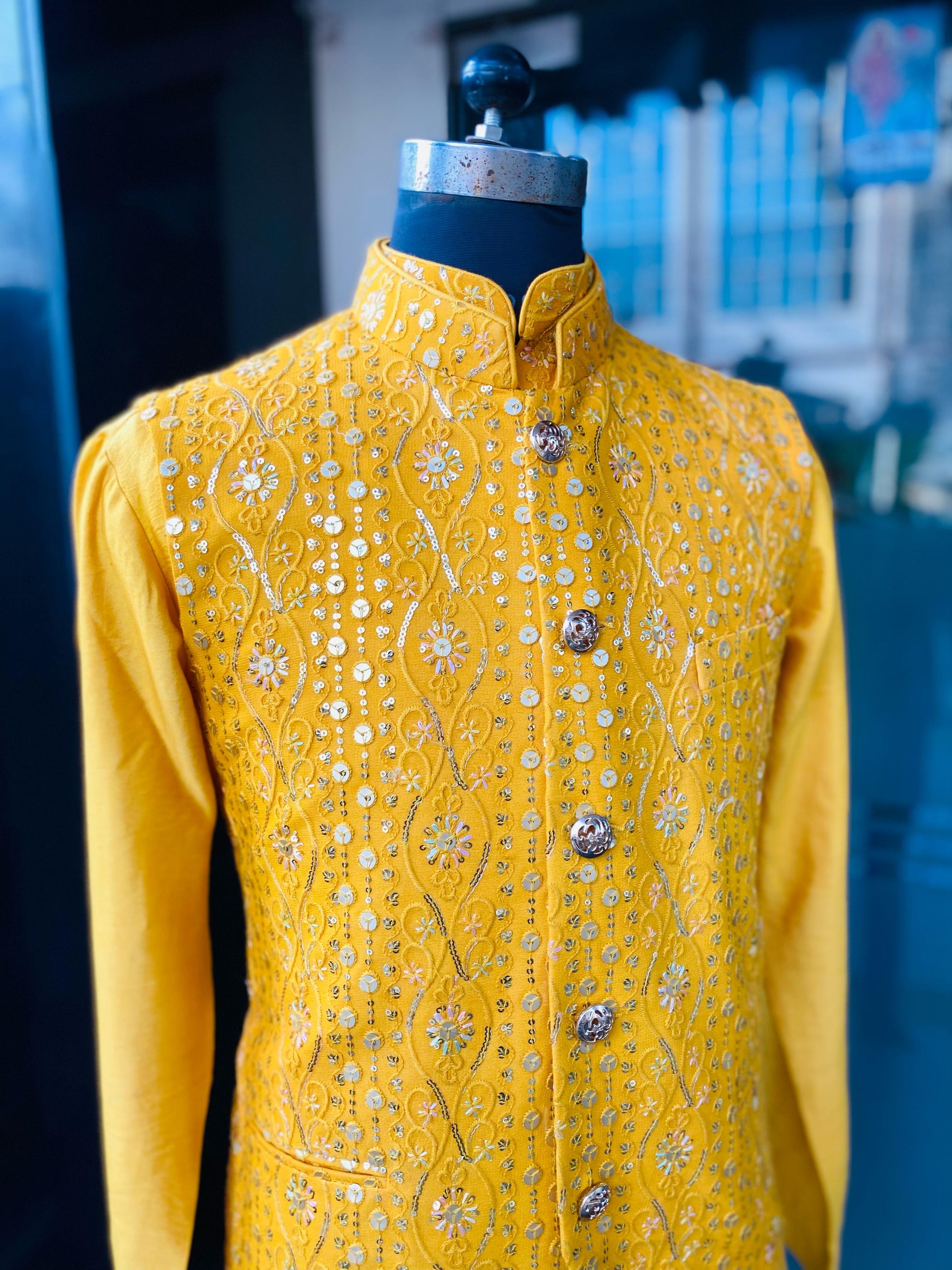 Menswear Yellow Waist Coat & Yellow Kurta Set
